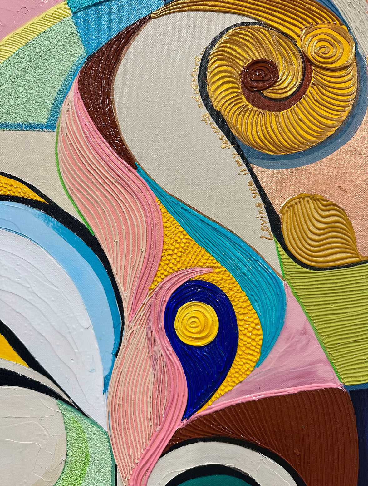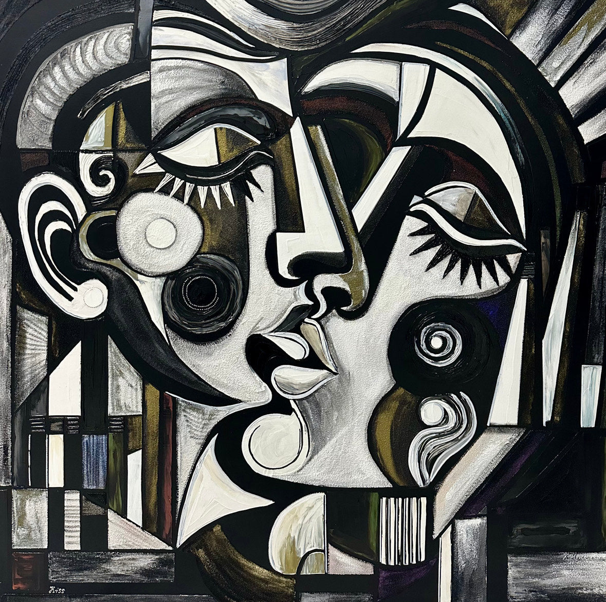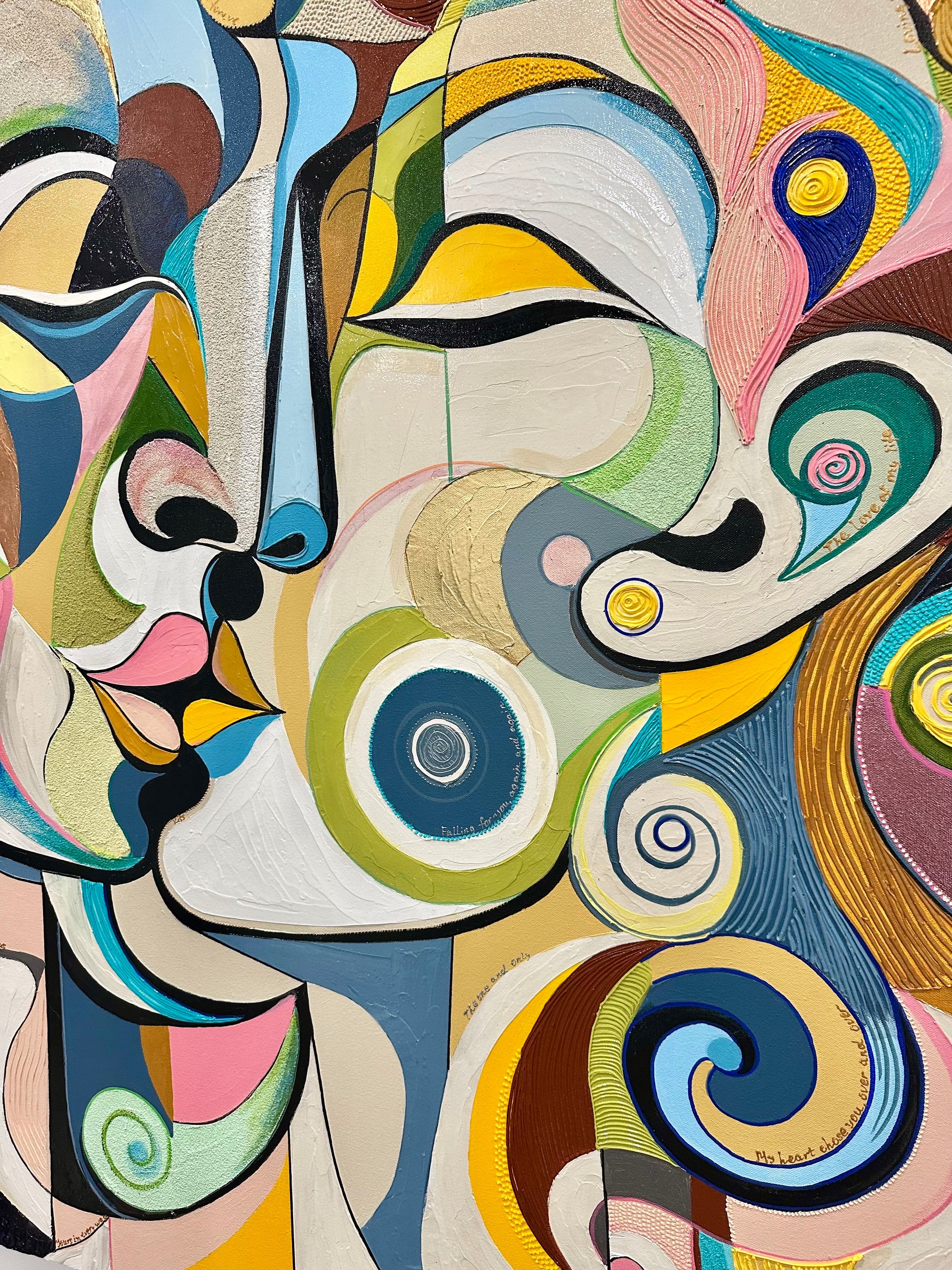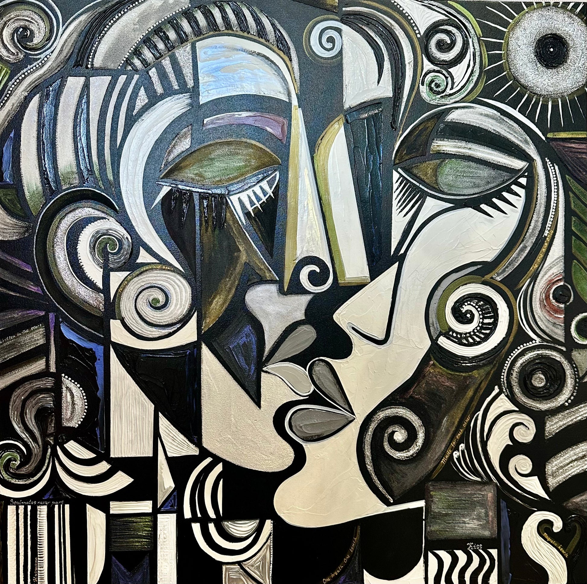 The painting "Kiss" is a visual expression of harmony and unity, where two faces merge into one, symbolizing the fusion of souls on every level.